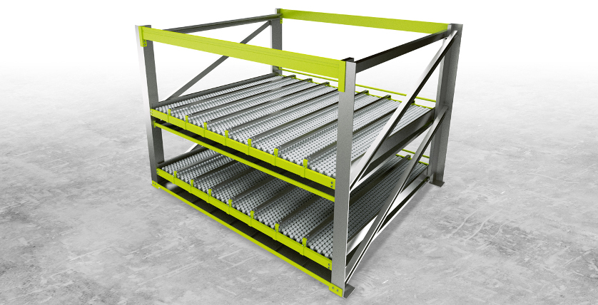 Die Durchlaufebene wurde optimal an die Lauffläche der Kanister angepasst. Hierzu ermittelten wir den exakten Lastschwerpunkt der Gefahrgut-Kanister und errechneten den maximalen Staudruck, um ein einfaches Rücklagern zu ermöglichen. Das benötigte Fassungsvermögen für die Auffangwanne wurde angepasst, um eventuell auslaufende Flüssigkeiten zuverlässig aufzufangen. So lässt sich mit AQS Gefahrgut sicher lagern.