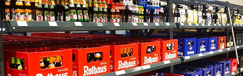 Die optimale Lösung für die Lagerung und Kommissionierung von Getränkekästen und Getränke-Gebinde wie Glasflaschen- oder PET-6er Verpackungen. Durch die Kombination von einer verstärkten Aufgabeseite mit Stahlrollen und den Einsatz der AQS-Röllchenleiste, ist das Durchlaufregal für Getränkekästen eine langlebige und wirtschaftliche Lösung für den Getränkehandel und die Getränkelogistik. Für eine detaillierte Beratung nehmen Sie gerne mit uns Kontakt auf.