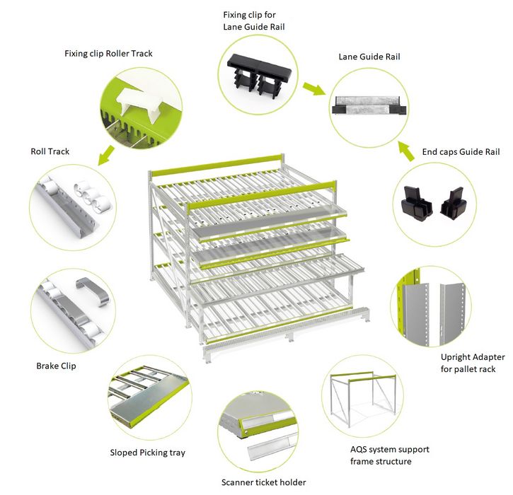 - Integration of the flow frames in all conventional pallet rack brands possible